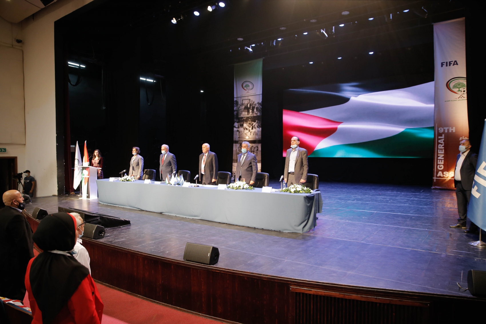 وحضر اجتماع الجمعية العمومية نائب رئيس الوزراء، زياد أبو عمرو، ممثلاً عن الرئيس محمود عباس، ووزير الحكم المحلي، مجدي الصالح، في حين ألقى كل من جياني انفانتينو رئيس الاتحاد الدولي لكرة القدم "الفيفا"، وداتو ويندسور جون، أمين عام الاتحاد الآسيوي، بالإضافة لجياني ميرلو رئيس الاتحاد الدولي للصحافة الرياضة، كلمات مسجلة لهم في بداية الاجتماع.