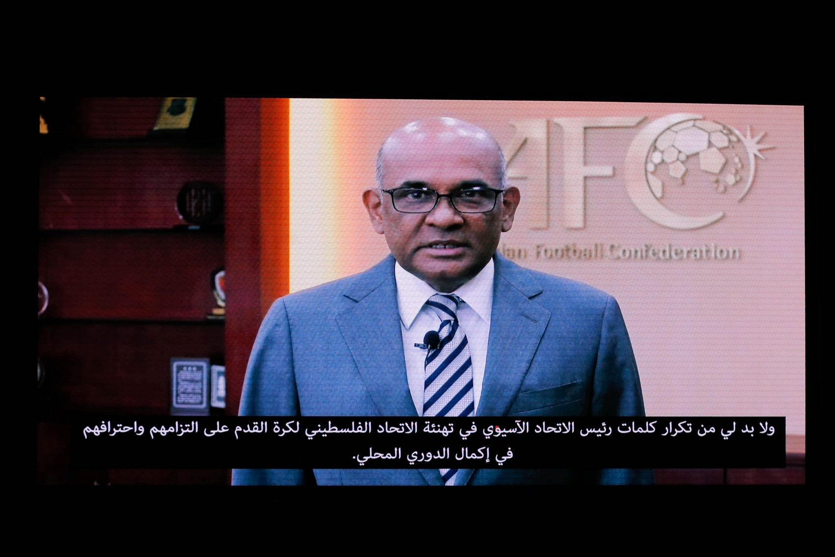 وبالنيابة عن رئيس الاتحاد الآسيوي لكرة القدم، الشيخ سلمان بن إبراهيم آل خليفة، قال داتو ويندسور، أمين عام الاتحاد الاسيوي : "أوّد أن أنقل أطيب تمنيات الاتحاد الآسيوي لكرة القدم إلى أسرة كرة القدم الفلسطينية، وأشكركم على إعطائي هذه الفرصة لمخاطبتكم اليوم".