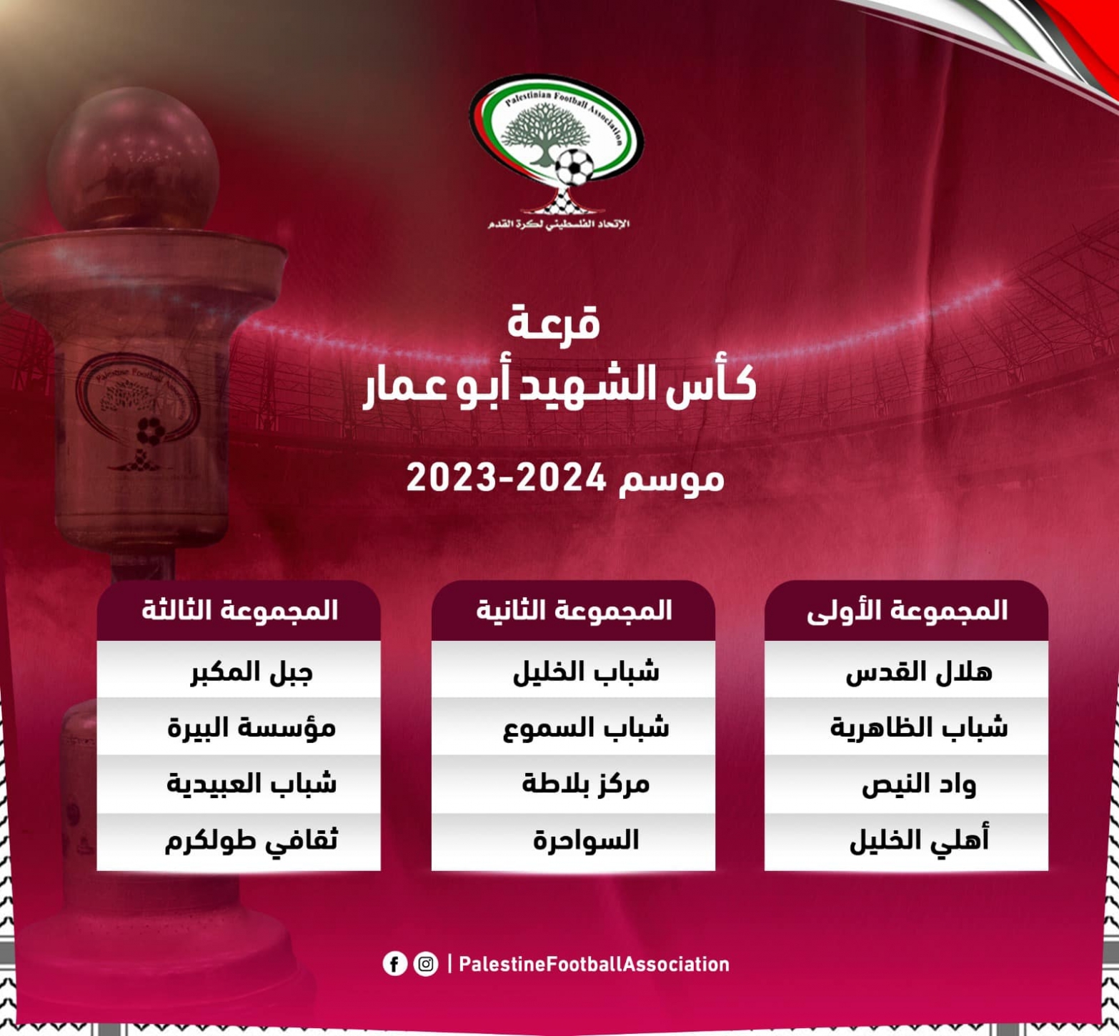 سحب قرعة كأس الشهيد أبو عمار موسم 2024/2023