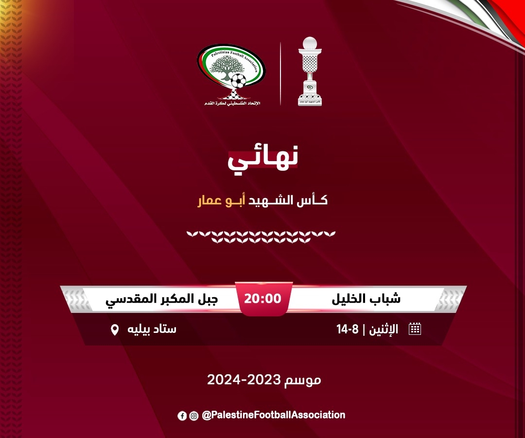 وأوضحت اللجنة أن نهائي كأس الشهيد أبو عمار بين شباب الخليل وجبل المكبر المقدسي، سيقام يوم الإثنين، الموافق 14/8/2023، الساعة 8 مساء على ملعب بيليه في الخضر.