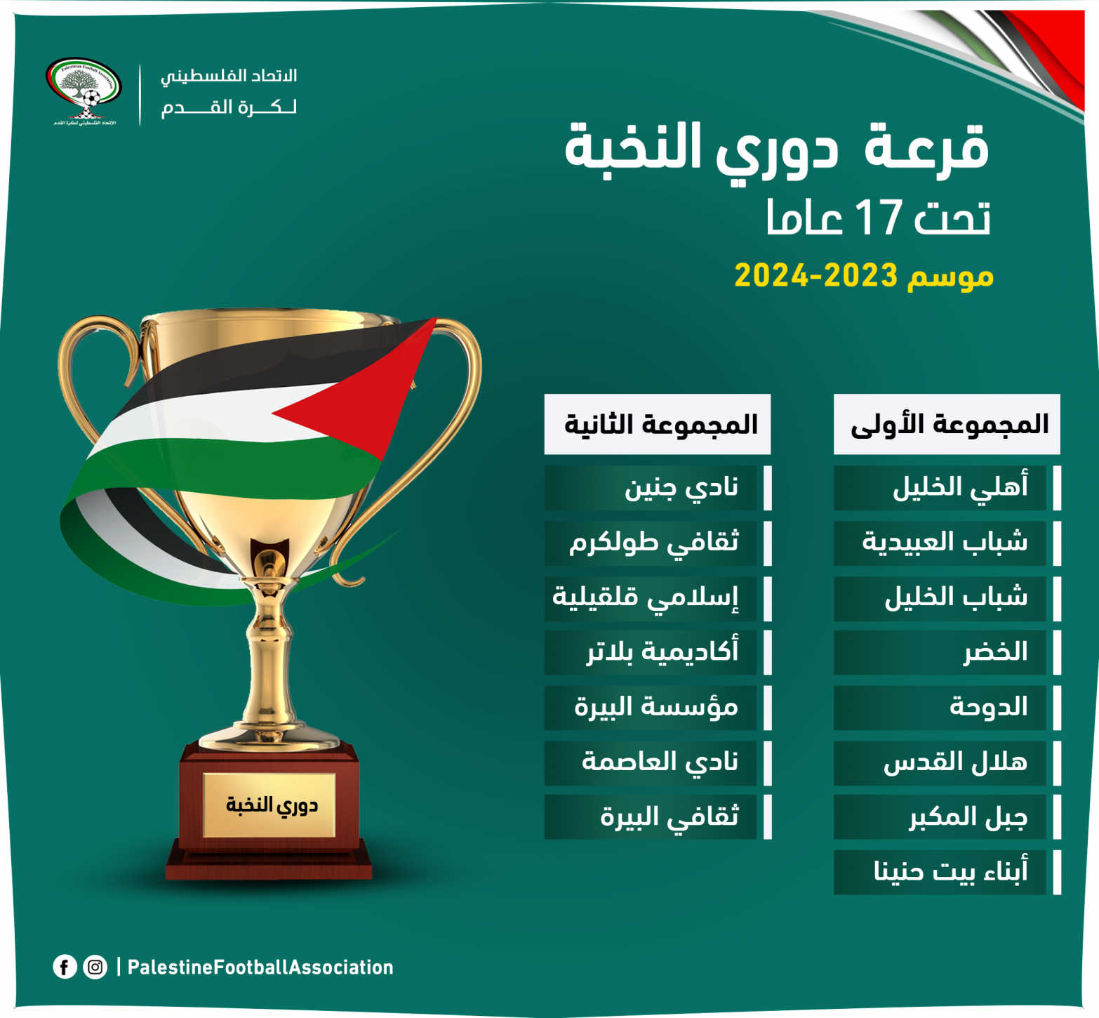 سحبت اليوم الأربعاء في مقر الاتحاد الفلسطيني لكرة القدم، قرعة دوري النخبة تحت 17 عاما لموسم 2024/2023.