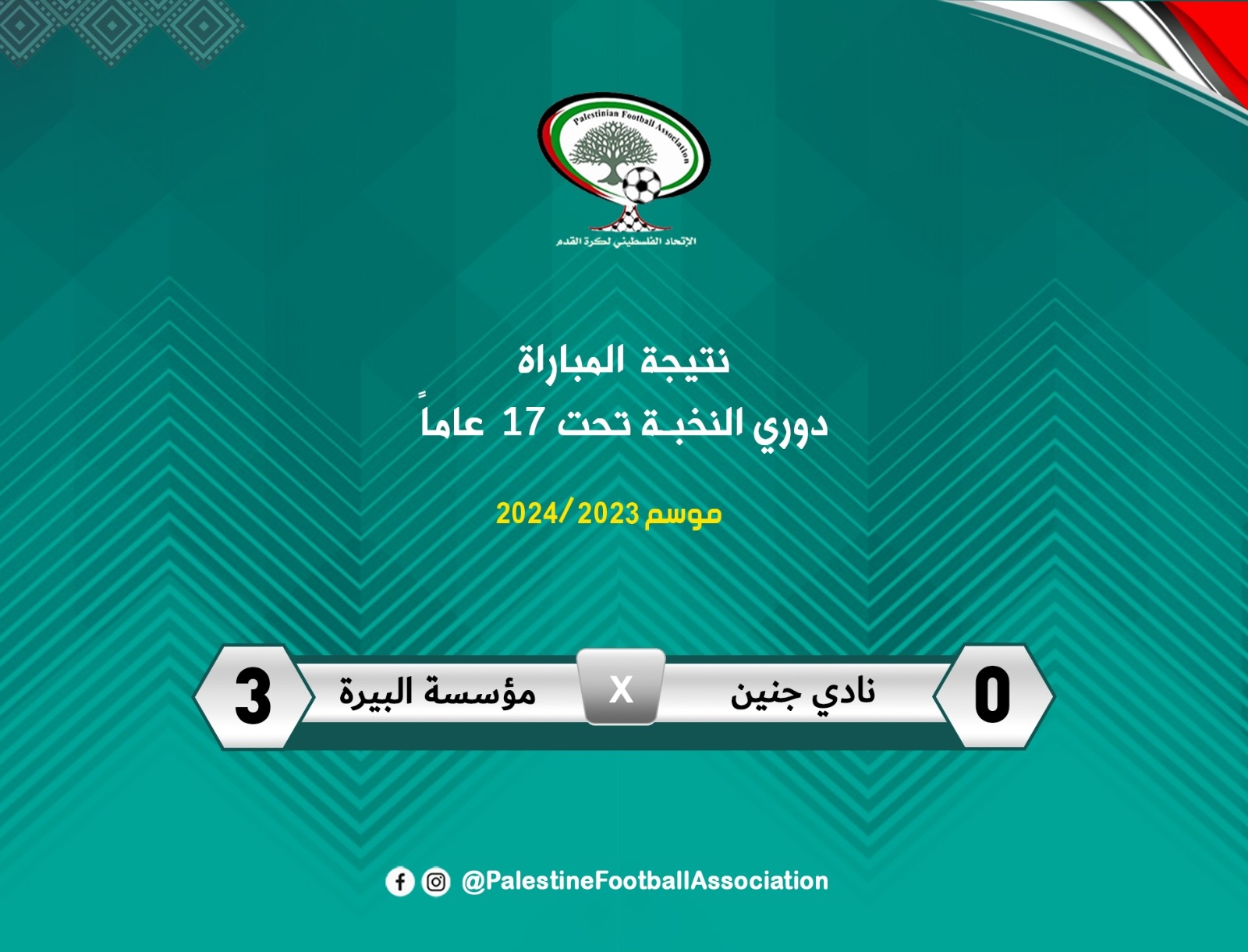 حقق مؤسسة البيرة فوزا عريضا على نادي جنين بثلاثية نظيفة، في ختام منافسات الأسبوع الخامس من دوري النخبة تحت 17 عاما.