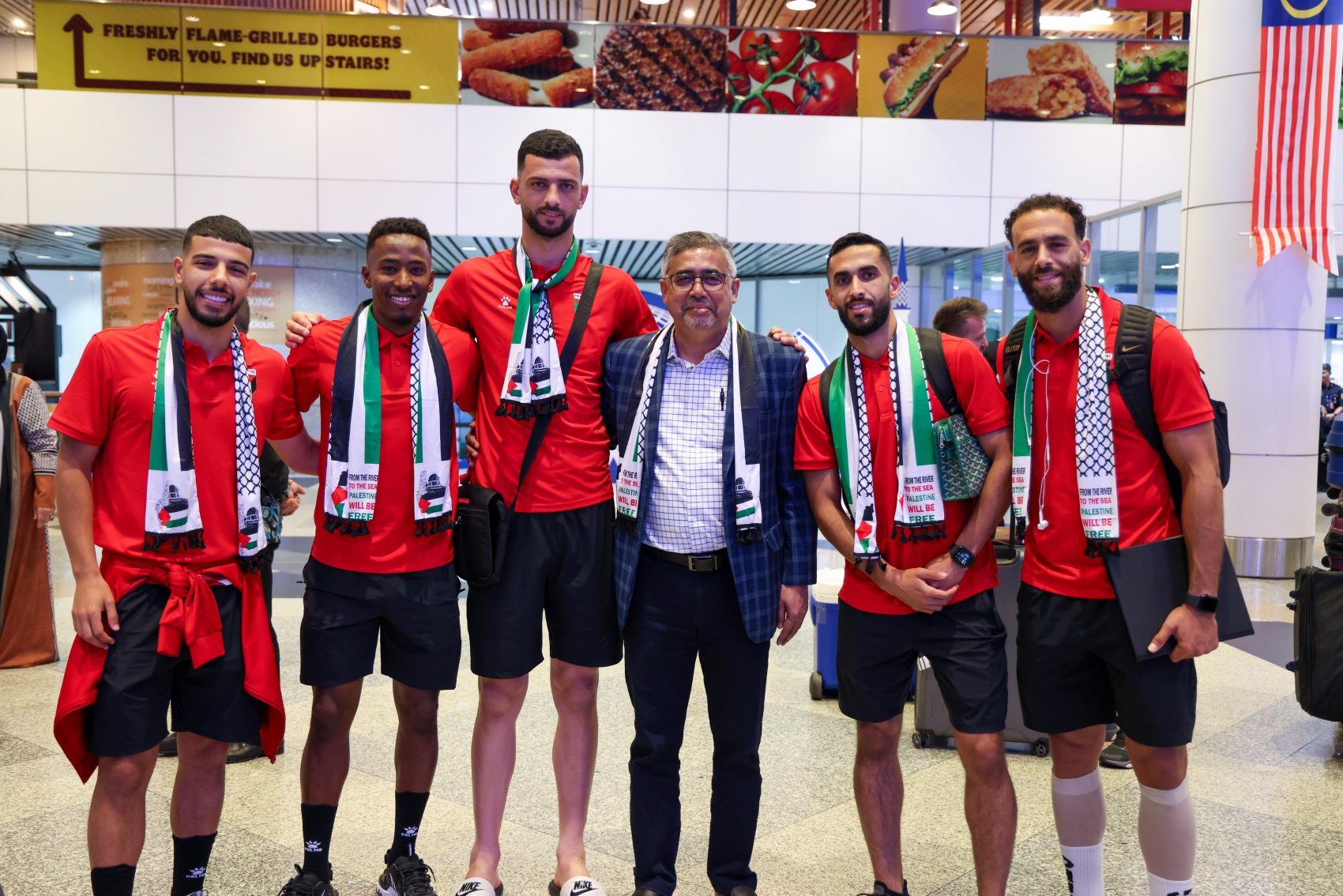 وحطت طائرة الفدائي مساء اليوم في مطار كوالالمبور الدولي، وكان في استقبالها سفير دولة فلسطين لدى ماليزيا، وليد أبو علي، وطاقم من السفارة، وعدد من المناصرين الماليزيين.