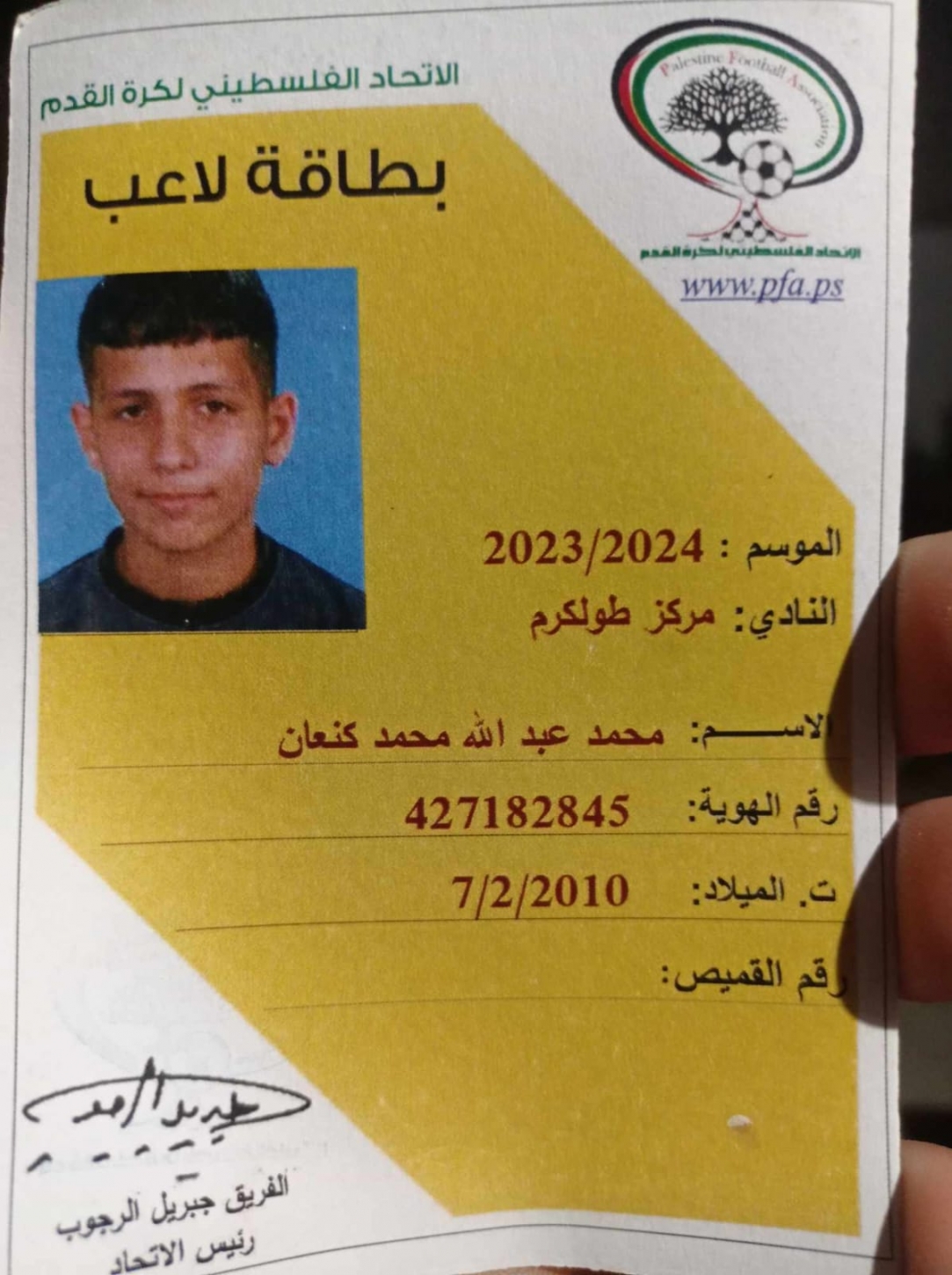وكانت قوات الاحتلال قتلت في شهر سبتمبر/ أيلول الماضي، المهاجم في نادي مركز شباب طولكرم، محمد عبد الله كنعان (14 عاما) برصاصة قناص خلال عودته مع والده إلى منزلهم بالمخيم.