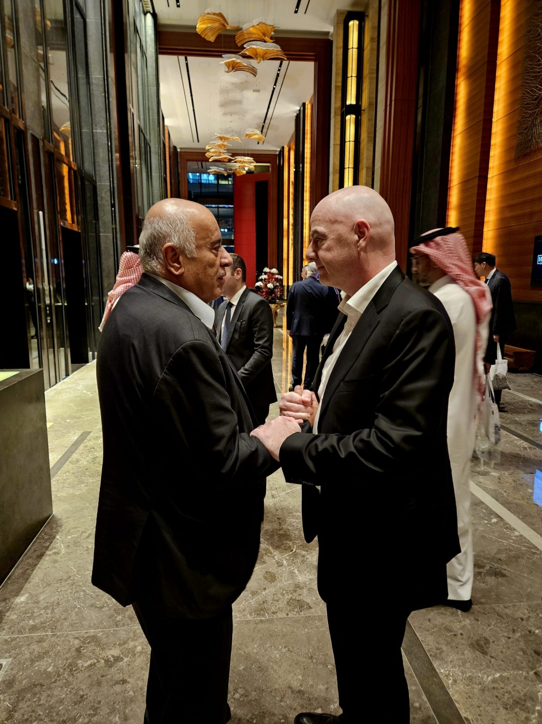 التقى رئيس الاتحاد الفلسطيني لكرة القدم، الفريق جبريل الرجوب، على هامش مؤتمر الاتحاد الآسيوي لرؤساء والأمناء العامين للاتحادات للعام 2024 المنعقد في العاصمة الكورية الجنوبية، سيؤول، رئيسَ الاتحاد الدولي لكرة القدم" فيفا" جياني إنفانتينو، وأمين عام الاتحاد، ماتياس جرافشتروم.