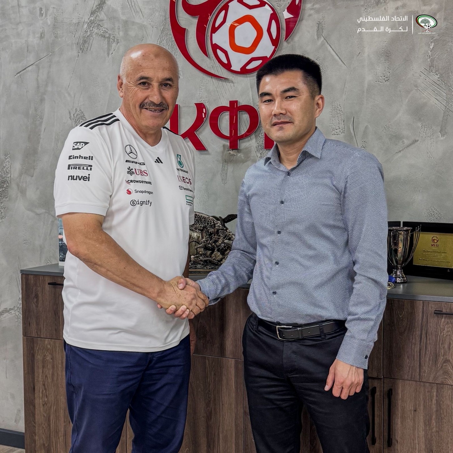 وخلال اللقاء، نقل الجعبري تحيات الفريق جبريل الرجوب، رئيس الاتحاد الفلسطيني لكرة القدم، معرباً عن شكره العميق للاتحاد القرغيزستاني على التسهيلات الكبيرة التي قدمها لاستضافة بعثة المنتخب الفلسطيني وتوفير كل سبل الراحة.