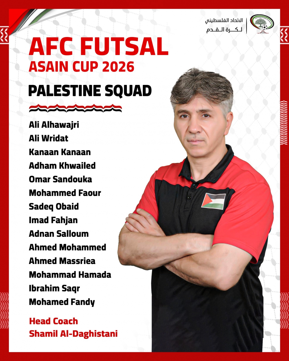 أعلن الجهاز الفني بقيادة الكابتن شامل الداغستاني، اليوم الخميس، قائمة المنتخب الوطني المشارك في تصفيات كأس آسيا لكرة الصالات 2026.