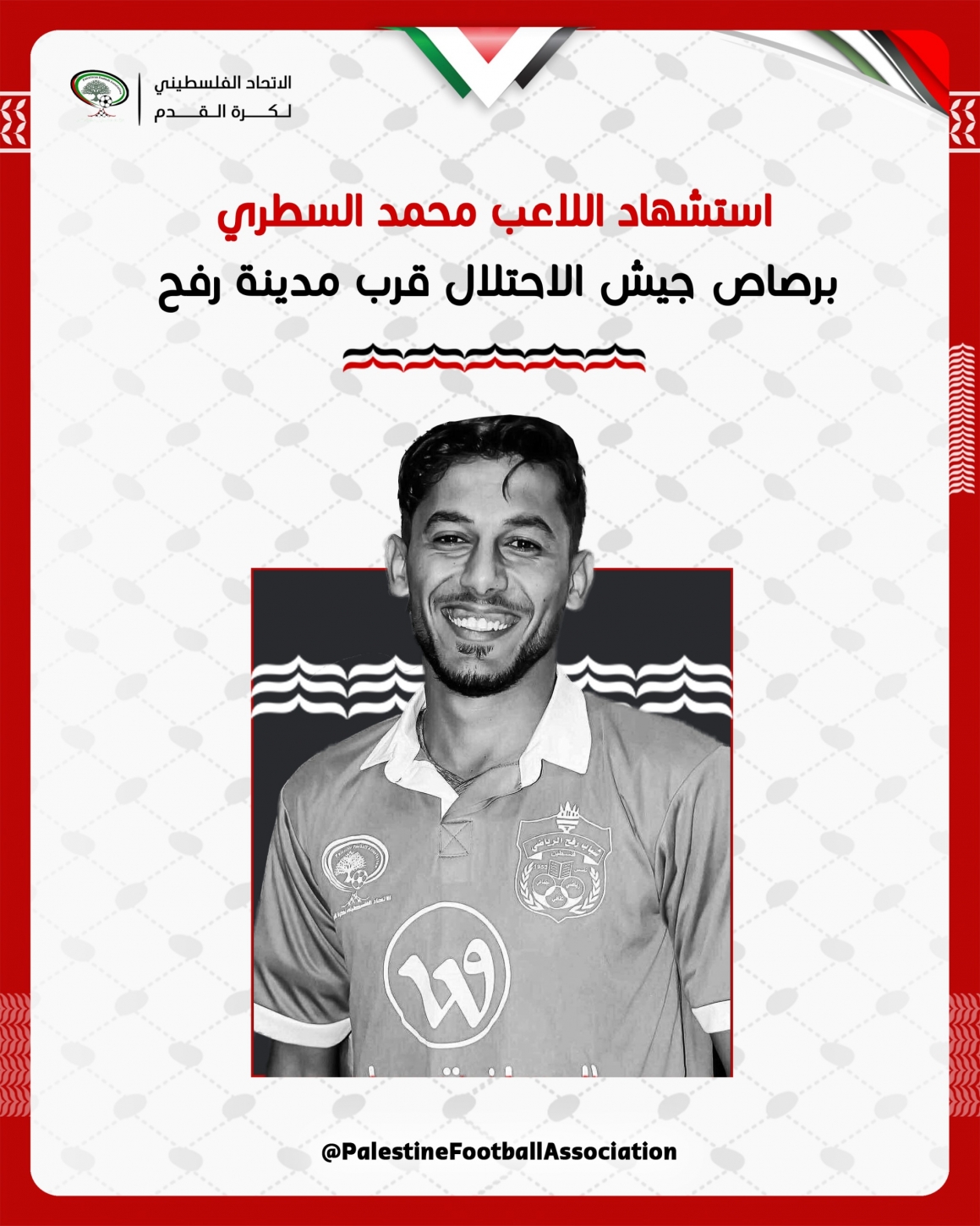 ونقلا عن مصدر طبي في غزة، قالت وكالة الأنباء الفلسطينية الرسمية "وفا" إن "لاعب نادي شباب رفح محمد السطري استشهد برصاص الاحتلال الإسرائيلي في منطقة الشاكوش شمال غربي رفح".