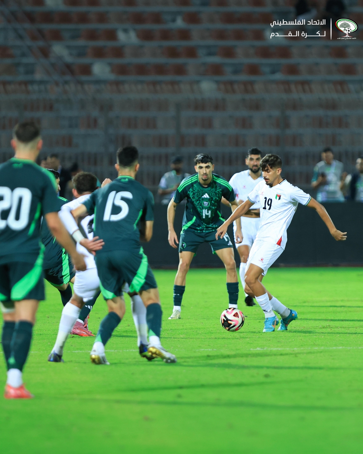 في الدقيقة 19، تصدى الحارس الجزائري محمد حديد لتسديدة من عدي خروب، بينما حاول ريان قلي وزميله يسري بوزريق الوصول لمرمى الفدائي في أكثر من فرصة، إلا أن الدفاع وحارس المرمى كانا في الموعد.
